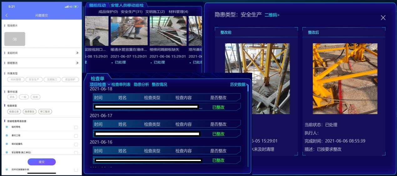 通过工蜂友邦APP,现场作业人员可采用“隐患随手拍”的方式上传现场隐患照片,提交安全/质量问题,达到人人管安全、安全人人管的效果。同时,所提交的问题会实时推送到对应的班组长或安全员,提醒相关人员及时组织整改,消除安全隐患。