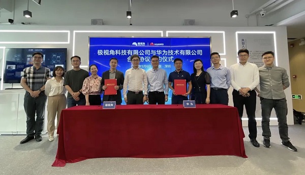2022年5月6日,极视角与华为在深圳签署合作协议,加入昇腾万里伙伴计划,共同推进人工智能产业繁荣发展,加速数字化进程。极视角CEO陈振杰、华为昇腾计算业务总裁张迪煊代表双方签约。