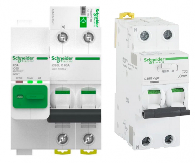 左:PowerTag FD电能监测模块 右:Acti9 iC65系列断路器