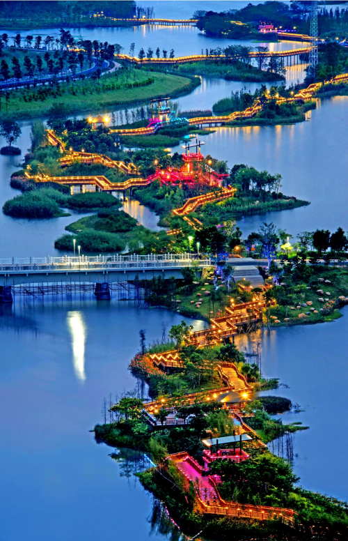 广州市花都湖国家湿地公园项目是棕榈股份打造的集人文气息、工业文化、湿地文化于一体的城市湿地公园。通过疏通滩涂形成生态岛链,提供生物栖息地,丰富物种多样性;重建废弃灯塔,保留场地工业记忆;新建多个文化景观节点,打造一个富有人文气息、工业文化、湿地文化于一身的城市生态名片。