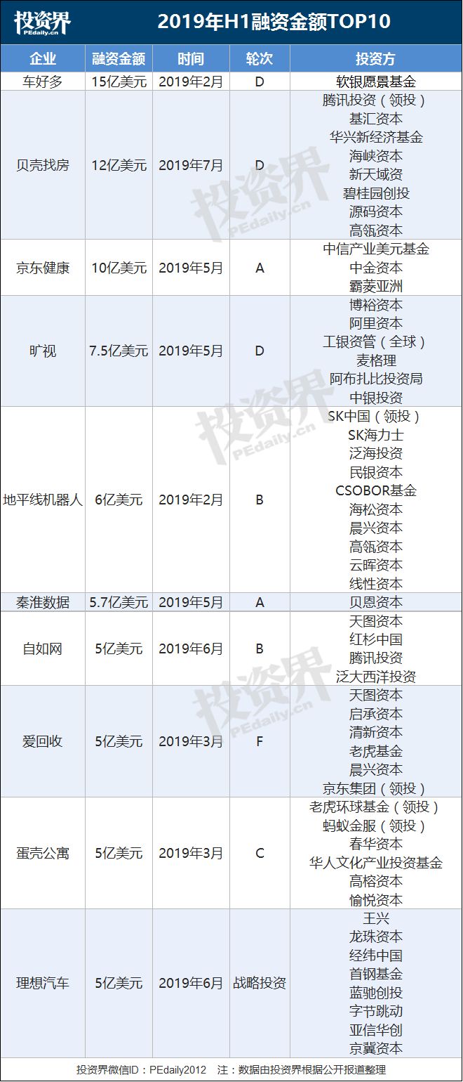 根据公开信息,投资界(微信ID:pedaily2012)整理了2019年上半年中融资金额最大的10笔融资,一窥上半年创投圈冷热。