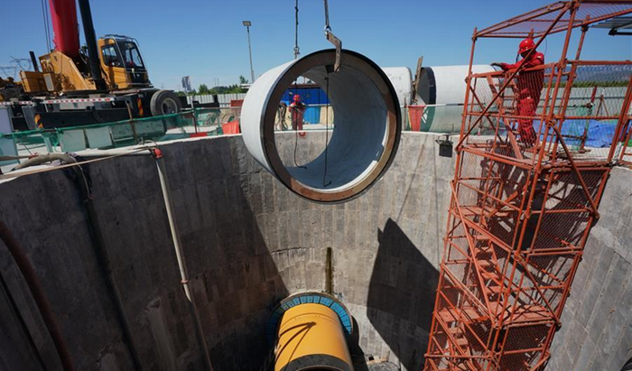 6月15日,中俄东线天然气管道工程(长岭-永清)秦皇岛市海港区境内的跨大石河顶管穿越隧道工程稳步推进。新华社图片
