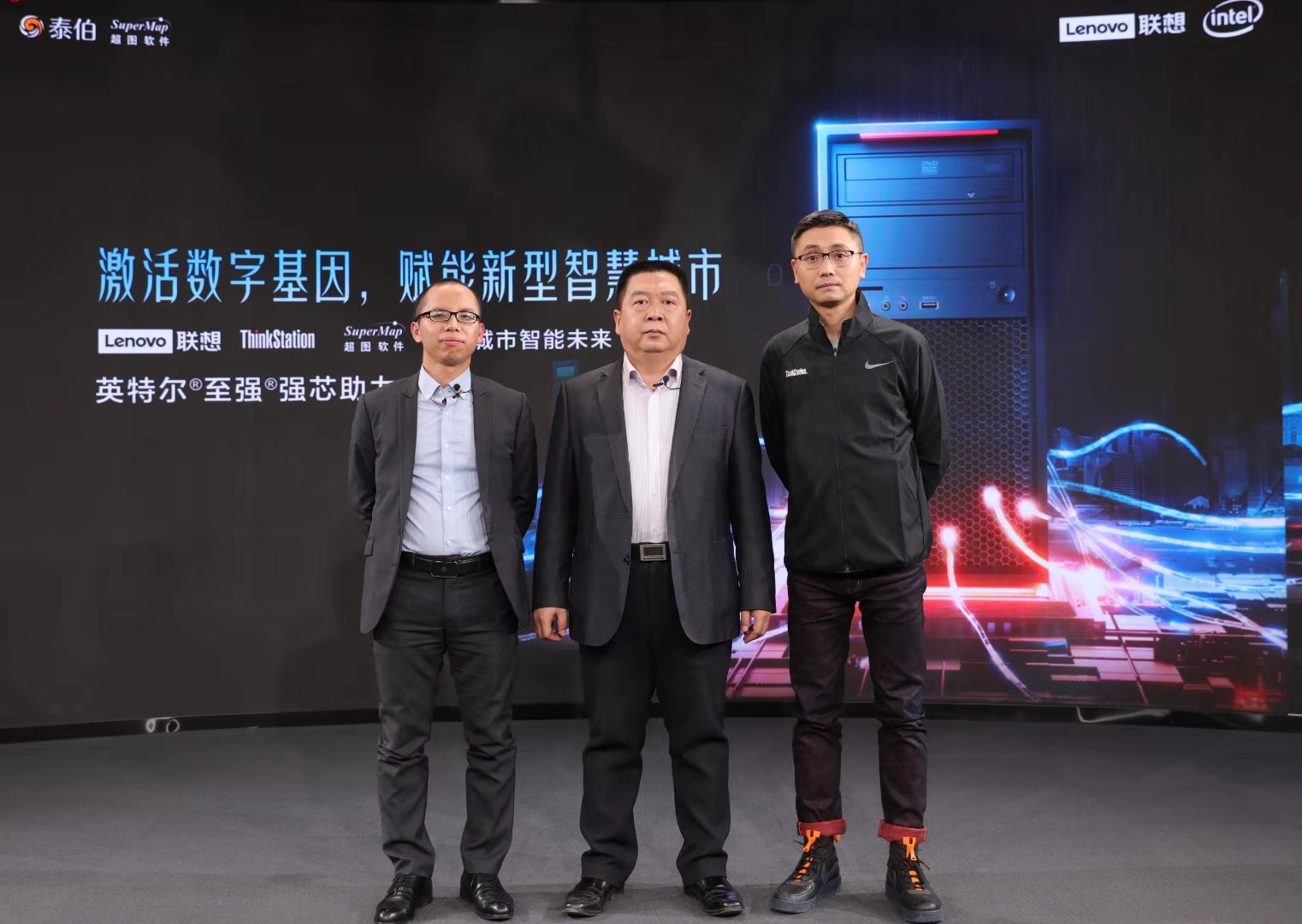 (图注:从左至右依次为,泰伯研究院院长王悦承、超图软件助理总裁翟利辉、联想ThinkStation整合营销高级经理左文佶)