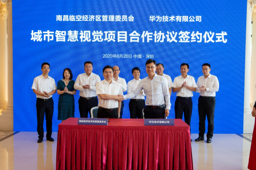 近日,南昌临空经济区与华为技术有限公司在深圳共同签署城市智慧视觉项目合作协议,省委常委、市委书记吴晓军,市领导郭毅、王万征、肖云,以及华为公司轮值董事长郭平、华为公司中国区总裁鲁勇等共同见证签约,南昌临空经济区党工委书记、管委会主任赵海东和华为公司机器视觉领域总裁段爱国代表双方签署协议。